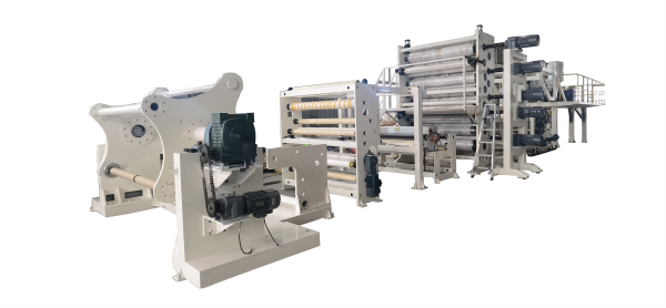 (2)設備高密度聚乙烯平膜擠出成型後的單向拉伸薄膜生產成型,這條生產線中的主要組(zǔ)成設備有:單螺杆擠出機、衣(yī)架(jià)型(xíng)(T型)成型模具、冷卻定型鯤、牽引裝置、拉伸輯、靜電處理裝置、切邊裝置和收卷裝置等。